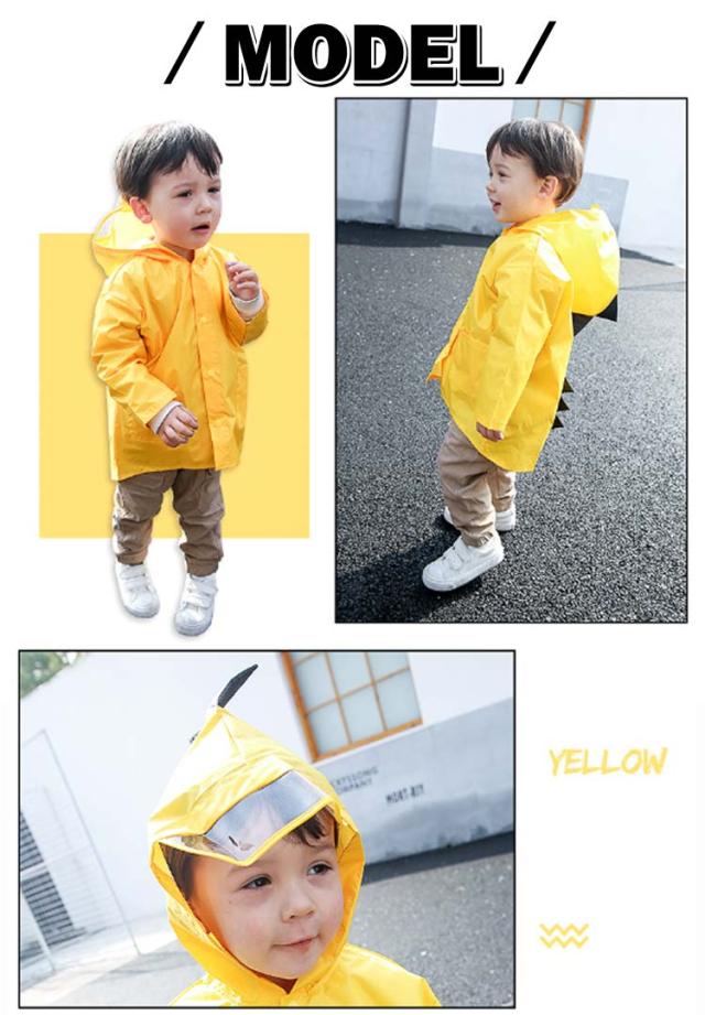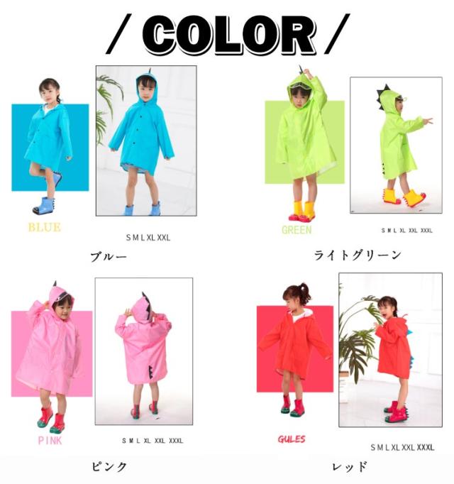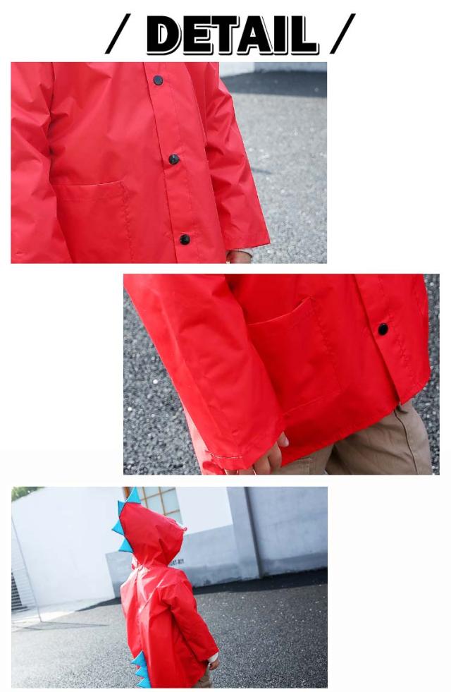| 雨の日のお出かけ・お散歩・通園・通学におすすめ! まるできぐるみのようなかわいい恐竜風レインコート 後ろ姿は目を引くかわいさ フードとヒップ部分には恐竜のたてがみをキュートに再現しています。 薄手で動きやすく、軽いのでお子様も動きやすく安心。 | |