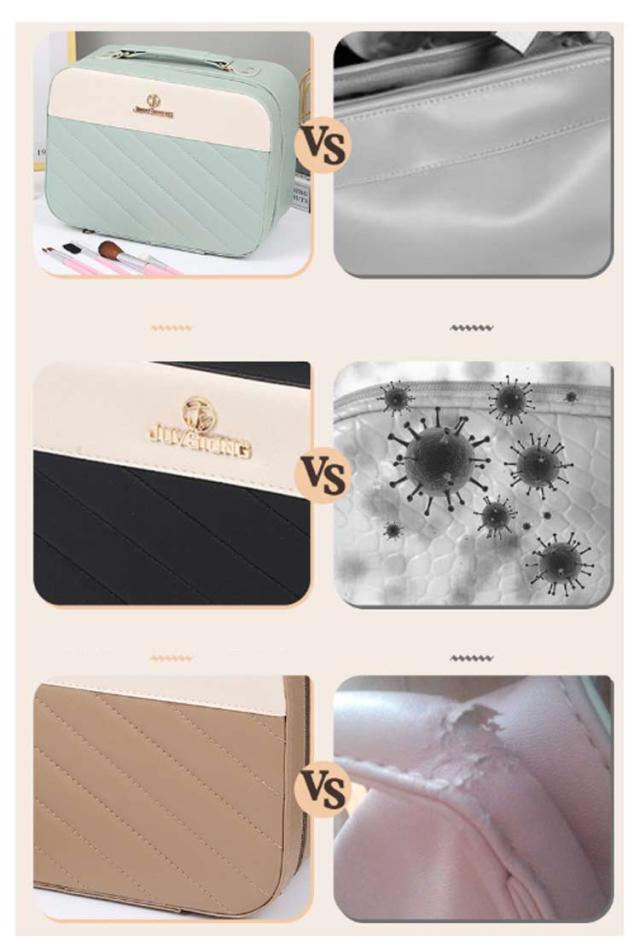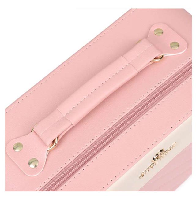 | お気に入りのメイクアイテムをきちんとたっぷり収納できるメイクボックスです! ゴールドの金具が相まって高級感が漂います。 ミラー付きなのでどこでもメイクOK。 撥水効果のあるPU素材のメイクバッグは、万が一水がかかってしまっても安心です。 フタ部分にちょっとした鏡がついているタイプになります。ちょっとしたメイク直しにお使い頂けます。 お泊りや旅行先でのお化粧には絶対役に立つこと間違いなしです。 | |