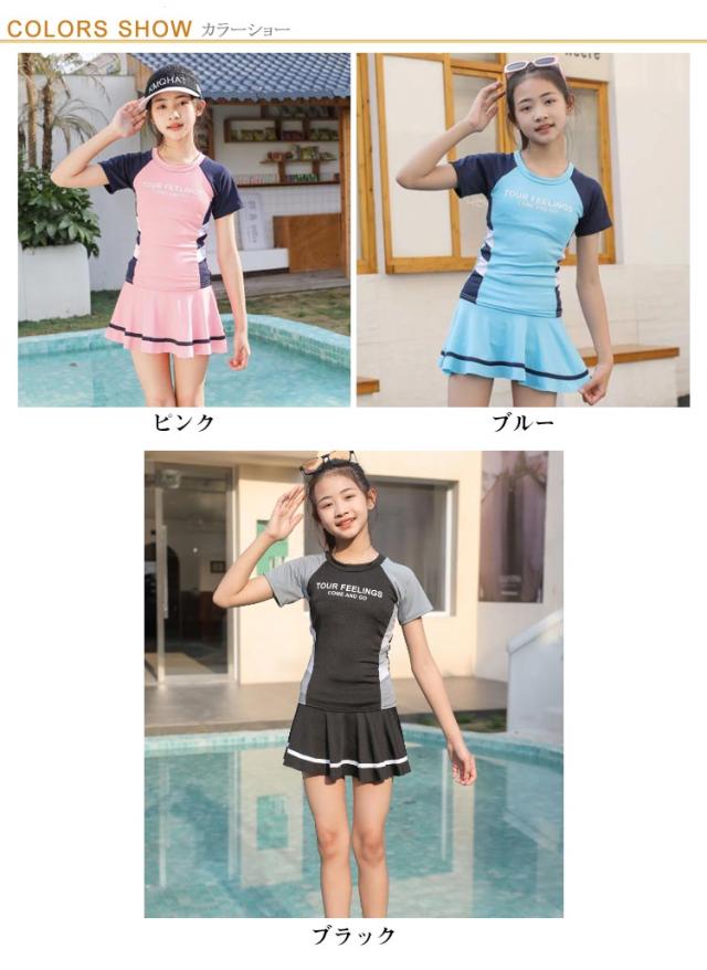 水着 子供 女の子 スカート水着 セパレート水着 インナーパンツ付き タンキニ 半袖 キッズ 水泳着 女児 小学生 中学生 ジュニア スイムウェア 子供用 速乾素材 紫外線対策 UVカット 夏休み 海 ビーチ 温泉 旅行 プール ラッシュガードセット