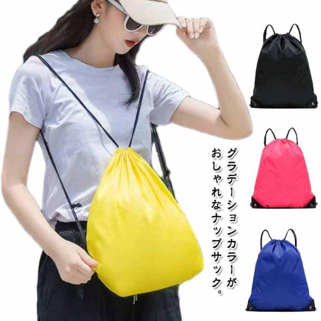 | グラデーションカラーがおしゃれなナップサック。 お子様の部活、習い事、体操着入れ、プールバッグにもおすすめ! ランドセルの上からも背負える調節可能な肩紐つき。 また、トレーニング・フィットネス用にジムサックとしてお使いいただけます。 大人から子供まで、好きなカラーでお使いいただけます! | |
