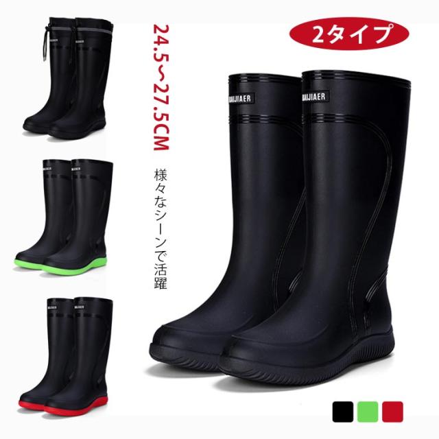 | 【2タイプ】【24.5〜27.5cm】 様々なシーンで活躍 普段使いもできるデザイン 農作業、ガーデニング、キャンプ、釣りなど、アウトドアでも活躍。 履き口部分はゴム入りで、絞る事ができる。 上からも水が入らない 脚にフィットさせれば、雨や泥が入らない。 凹凸のあるソールで滑りにくい 柔らかく、足も疲れにくい。 | |