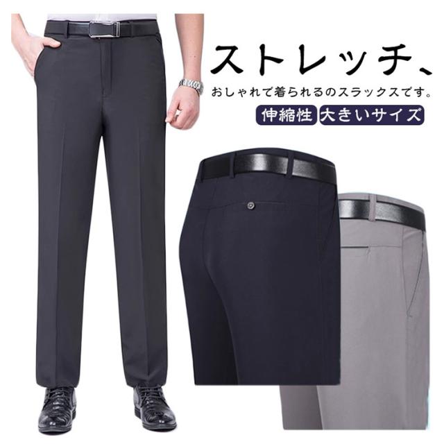 スラックス パンツ スーツパンツ ストレート ビジネスパンツ 男性用 メンズ ズボン ボトムス ビジネス アイスシルクパンツ ストレッチ 大きいサイズ ロングパンツ 洗える 通勤 ロングパンツ 美脚 無地 紳士 春 夏 秋 冬