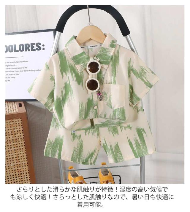 アロハシャツ リゾート リゾート セットアップ ショートパンツ ハーフパンツ 子供服 ギフト 2点セット 子ども 半袖シャツ 上下セット 110cm 男の子 女の子 ジュニア ベビー服 春夏 キッズ 海 ビーチ 旅行 総柄 5色 80cm 90cm 100cm 送料無料 120cm 130cm 140cm 150cm