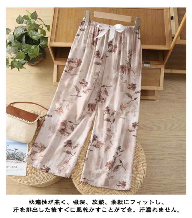 ステテコ パンツ ひざ下 夏 花柄 ステテコパンツ ルームパンツ 7分丈 ルームウェア レディース ハーフパンツ 柄 総柄 ステテコ ゆったり ボトムス 薄手 部屋着 おしゃれ かわいい リラテコ 婦人 部屋着 サラサラ パジャマ 涼しい リラックス