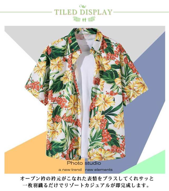 | 今季トレンド感バツグンのメンズ開襟シャツ アロハシャツが新登場! オープン衿の衿元がこなれた表情をプラスしてくれサッと一枚羽織るだけでリゾートカジュアルが即完成します。 素材はアロハシャツらしいシットリとした肌触りが魅力のレーヨンをご用意しました。 カジュアルに普段使いにも、リゾート挙式にも シャツとしてはもちろん、羽織りとして着るのもおすすめ ハンドメイドならではの温もりを感じよう 薄手なので春から夏の終わりまで役立つ優れもの ワイド過ぎずないゆったり男女兼用サイズ フェスやアウトドアや海や南の島へ旅行にオススメ ゆったりファッションに合わせやすい 腕まくりをしてタイトに魅せてもいい感じ ボトムはワイドや細身パンツでもOK | |