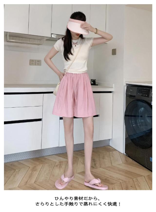 薄手 ハーフパンツ 冷感パンツ 夏服 涼しい ゆったり 五分丈 短パン フレアシルエット アイスシルク 冷感パンツ ウエストゴム ショートパンツ ハイウエスト ボトムス 部屋着 ルームウエア お洒落 カジュアル 無地