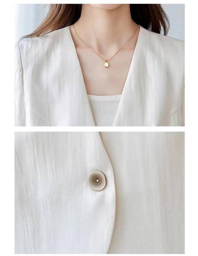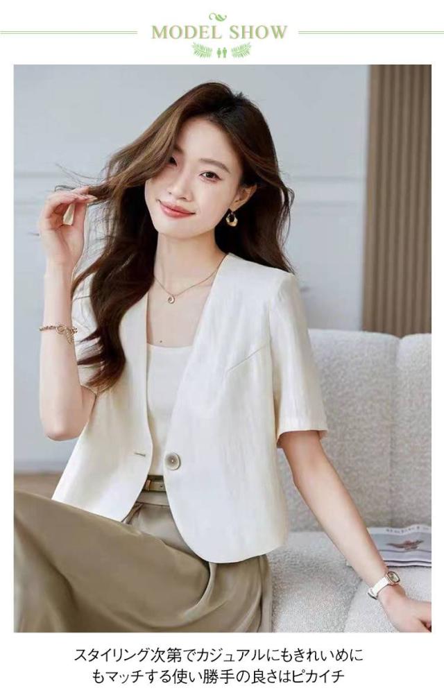 ジャケット レディース ノーカラージャケット 春 オフィス 夏 半袖 通勤服 夏用ジャケット Vネック ジャケット 薄手 ボタン サマー ジャケット カラーレスジャケット UVカット 羽織り 接触冷感 冷房対策 オフィスカジュアル
