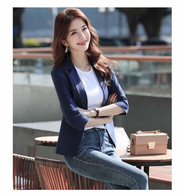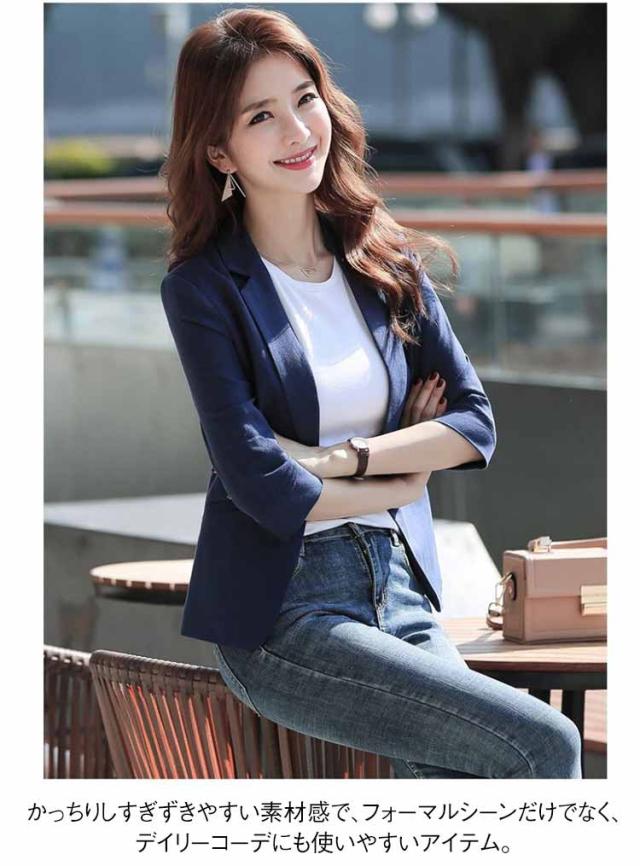 ビジネス テーラードジャケット ショート丈 レディース 七分袖 スーツ カジュアル カジュアル OL サマージャケット 綿麻 オフィス ゆったり 通勤 リネンジャケット サマージャケット フォーマル 薄手 はおり 上着 おしゃれ レディースファッション