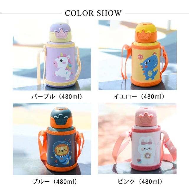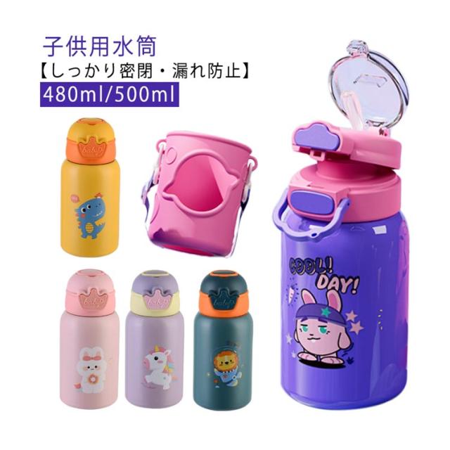 魔法瓶 480ml 水筒 ステンレス ボトル 子供 保冷 真空断熱 肩掛け ショルダー 水筒カバー 漏れない 2way 保温 おしゃれ 水筒 手提げ キッズ かわいい キッズ 男の子 女の子 小学生 入? 誕生日