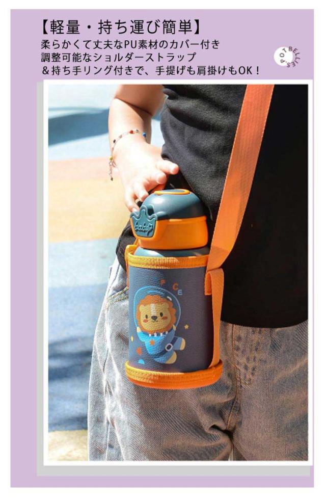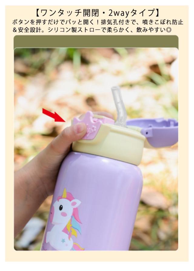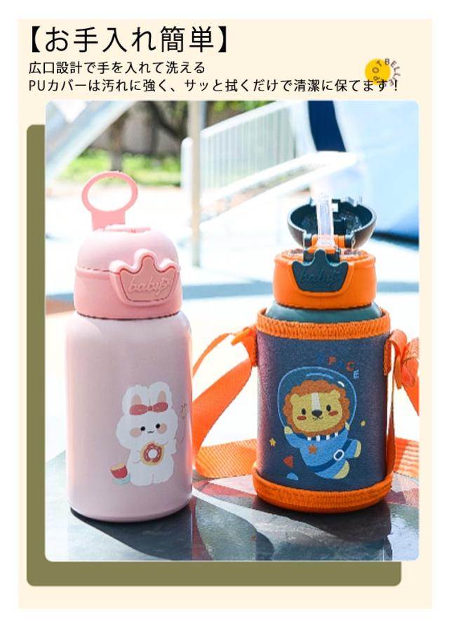 | 子供用水筒|480ml/500ml 可愛いキャラクター柄・PUカバー付き・ワンタッチ開閉・漏れ防止 通園・通学・遠足・ピクニックなど、どこでも大活躍! 【ワンタッチ開閉・2wayタイプ】 ボタンを押すだけでパッと開く! 排気孔付きで、噴きこぼれ防止&安全設計。 シリコン製ストローで柔らかく、飲みやすい◎ 【保温・保冷対応】 ステンレス製の二重真空断熱構造で、温かさ・冷たさをしっかりキープ。 【しっかり密閉・漏れ防止】 食品級シリコンの密封リング内蔵で、カバンの中でも安心。逆さにしても漏れません! 【軽量・持ち運び簡単】 柔らかくて丈夫なPU素材のカバー付き 調整可能なショルダーストラップ&持ち手リング付きで、手提げも肩掛けもOK! 【お手入れ簡単】 広口設計で手を入れて洗える PUカバーは汚れに強く、サッと拭くだけで清潔に保てます! | |