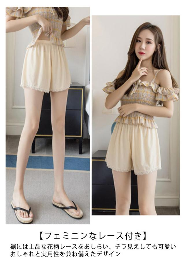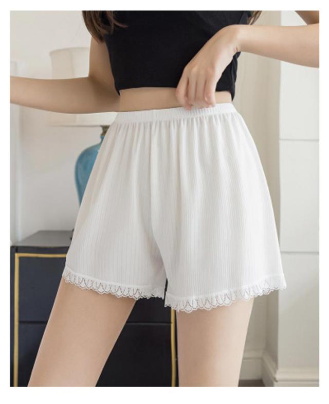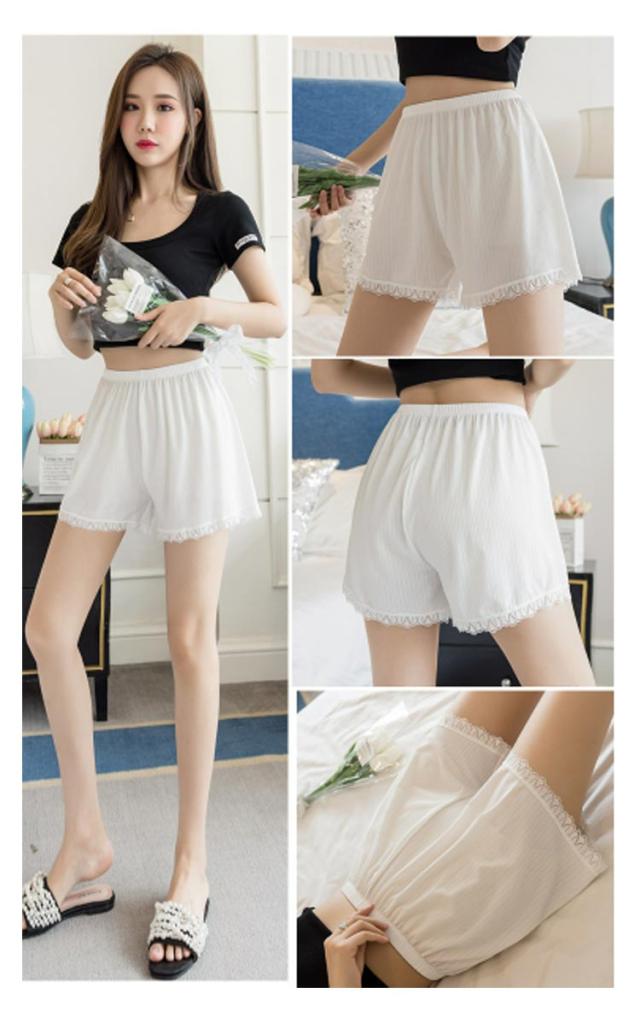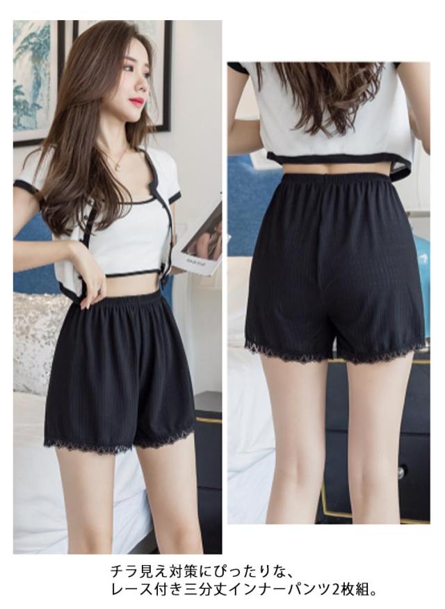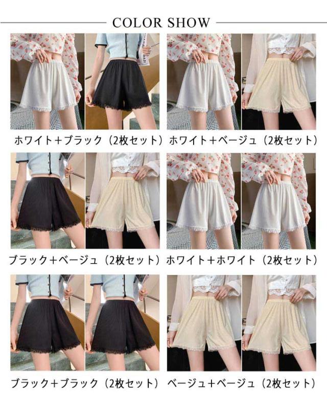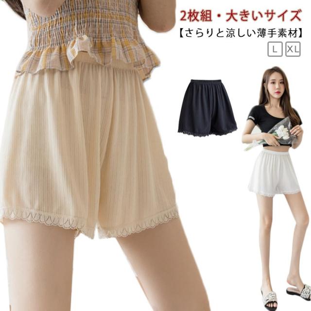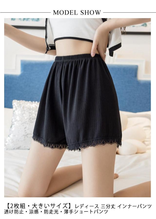 薄手 裾レース付き 【2枚セット】トランクス ショートパンツ 三分丈 透け防止 インナーパンツ 下着 ペチコート レディース 無地 シンプル ゆったり おしゃれ ナイトウエア 女性用