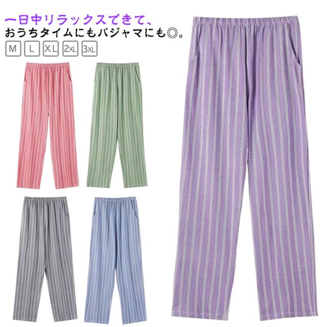 ズボン レディース ルームパンツ ステテコ ステテコ 夏 ステテコ 夏パンツ ルームウェア おしゃれ シンプル 綿 寝間着 ストライプ柄 部屋着 春夏 ポケット パジャマ ロングパンツ 涼しい リラックスパンツ 大きいサイズ ゆったり パンツ 肌着 ズボン