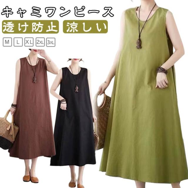 キャミワンピース インナー 秋 ペチコート レディース タンクトップ ワンピ キャミ 春 インナーワンピース 麻 Aライン ロングワンピース シンプル 無地ワンピ 夏 薄手 涼しい キャミワンピ ワンピ下 カジュアル ナチュラル 透け防止 キャミソールワンピース 送料無料