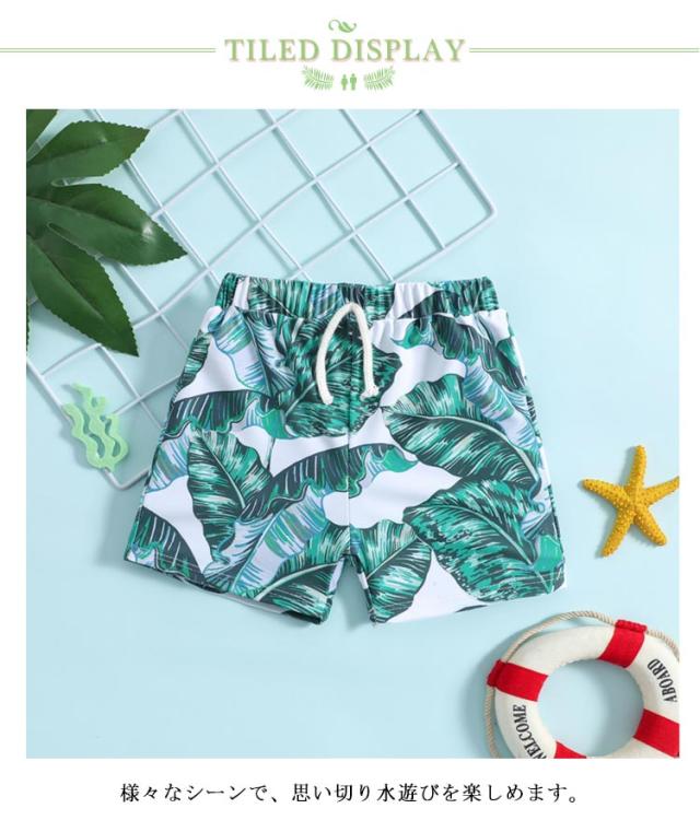 水着 キッズ パンツ 男の子 海パン サーフパンツ ハーフパンツ 葉柄 ビーチパンツ スイミング パンツ 子供用 小学生 シンプル 総柄 花柄 水遊び 水泳 プール 水陸両用 スポーツ ショートパンツ スイムウェア