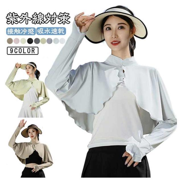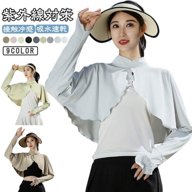 軽量 UVカット レディース 指穴 カーディガン 首元 吸水速乾 UPF50+ 立ち襟 ボレロ 長袖 接触冷感 羽織 冷房対策 通気 UVカット 涼しい おしゃれ 自転車 日焼け防止 紫外線対策 ラッシュガード ケープ UVケア アームカバー スポーツ