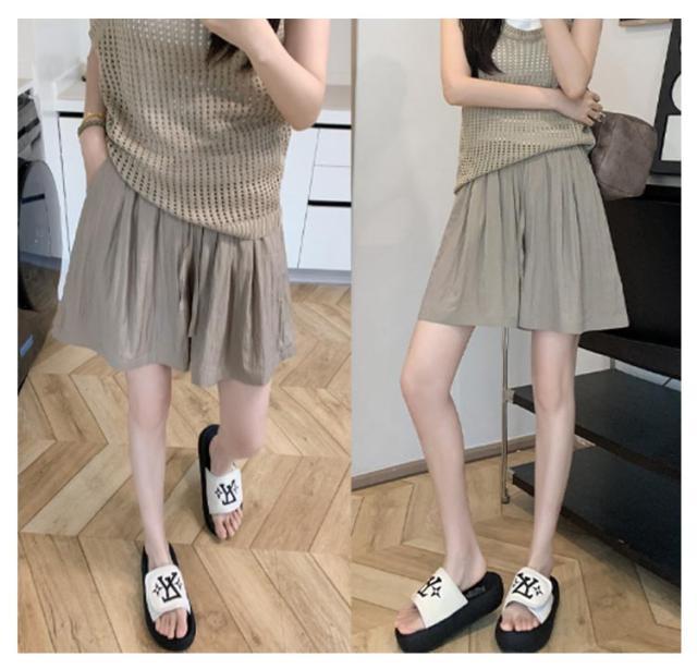 夏服 涼しい 薄手 冷感パンツ ハーフパンツ 部屋着 ショートパンツ ゆったり フレアシルエット アイスシルク 半ズボン ウエストゴム 短パン ボトムス ルームウエア 冷感パンツ ハイウエスト お洒落 カジュアル 無地