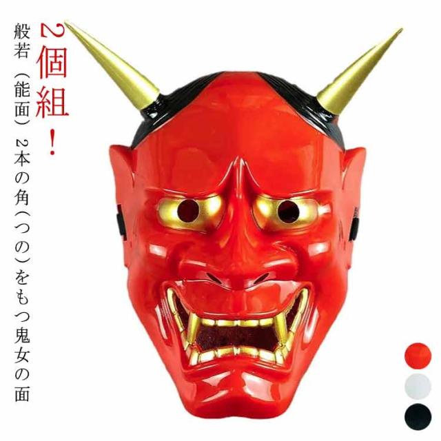 | 2個組 !般若(能面)2本の角(つの)をもつ鬼女の面 ハロウィンや イベント 舞台や演劇でも活躍しそうな恐ろしい形相の、般若のお面 | |