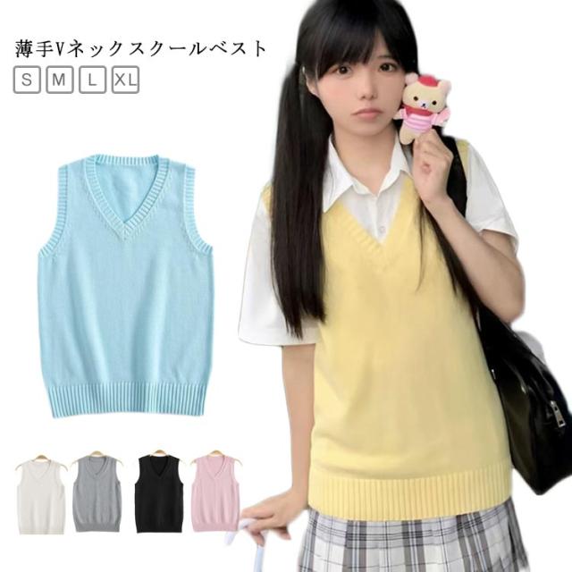 ニットベスト スクールベスト 中学生 無地 ニット スクール ノースリーブ 学生服 秋 ベスト セーター ベスト 無地 高校生 Vネック 女子高生 JK制服 ニットベスト 送料無料 春 夏 ベスト