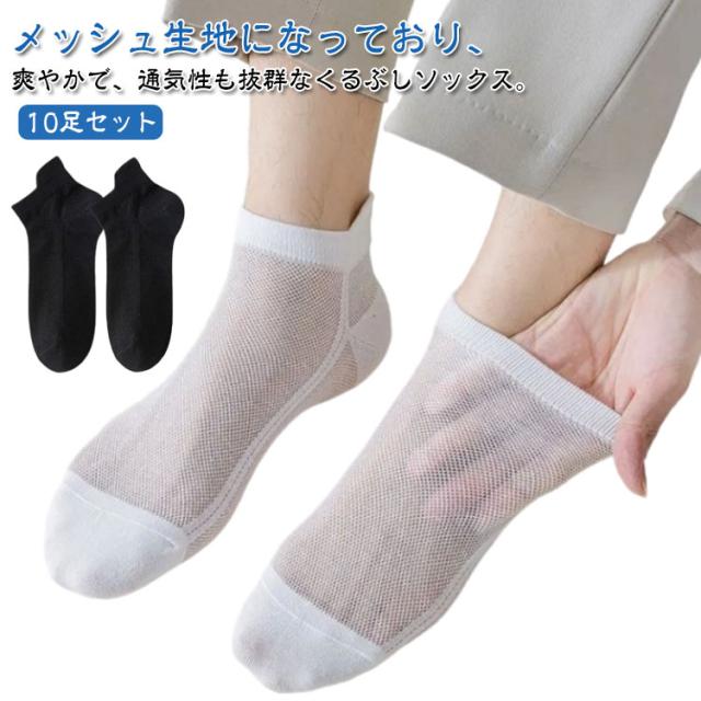 黒 ビジネスソックス くるぶし メッシュソックス 白 靴下 夏用 速乾 涼しい メッシュ アンクル アンクルソックス メンズ くるぶしソックス 綿 コットン 通気性 10足セット 脱げない 蒸れない メッシュ 抗菌 防臭