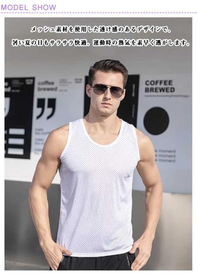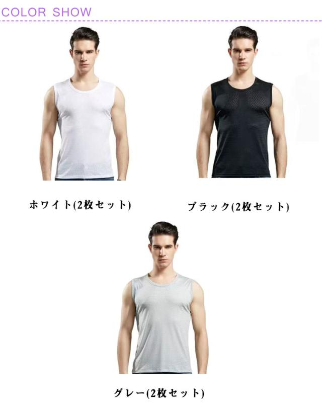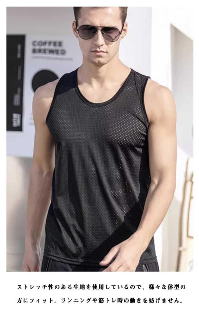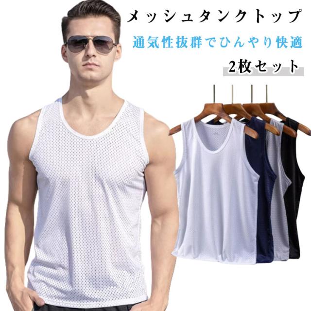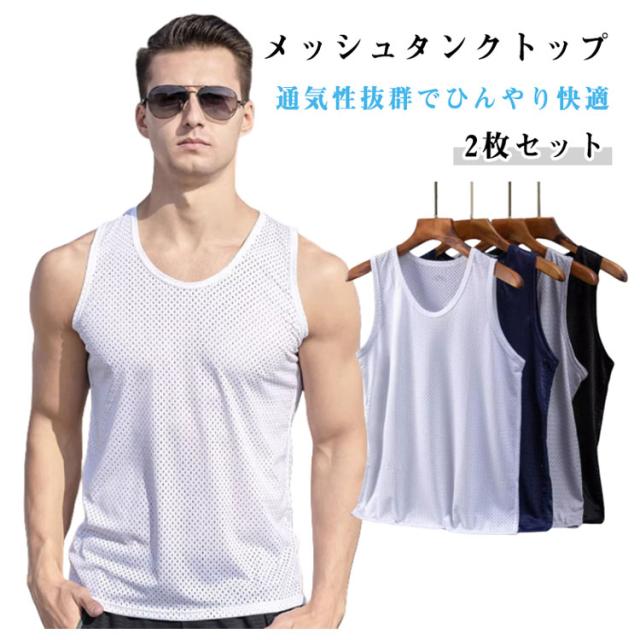 2枚セット タンクトップ メンズ インナー 夏 メッシュ スポーツ 通気性 吸汗 速乾 快適 軽量 ジム ランニング トレーニング 涼しい 大きいサイズ ゆったり ストレッチ 部屋着 カジュアル スポーツウェア フィットネス 運動