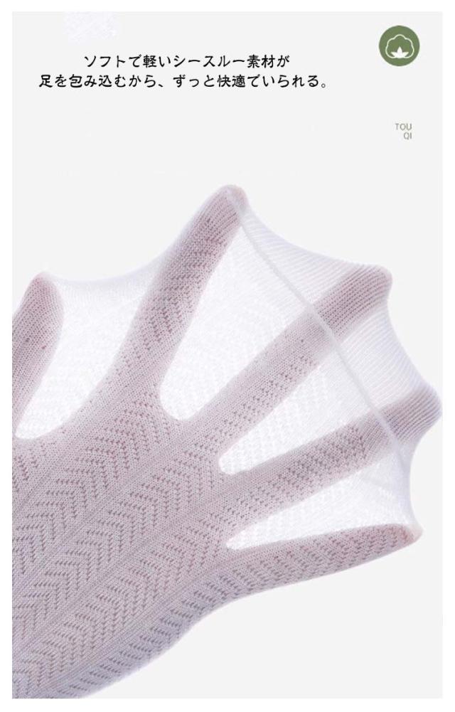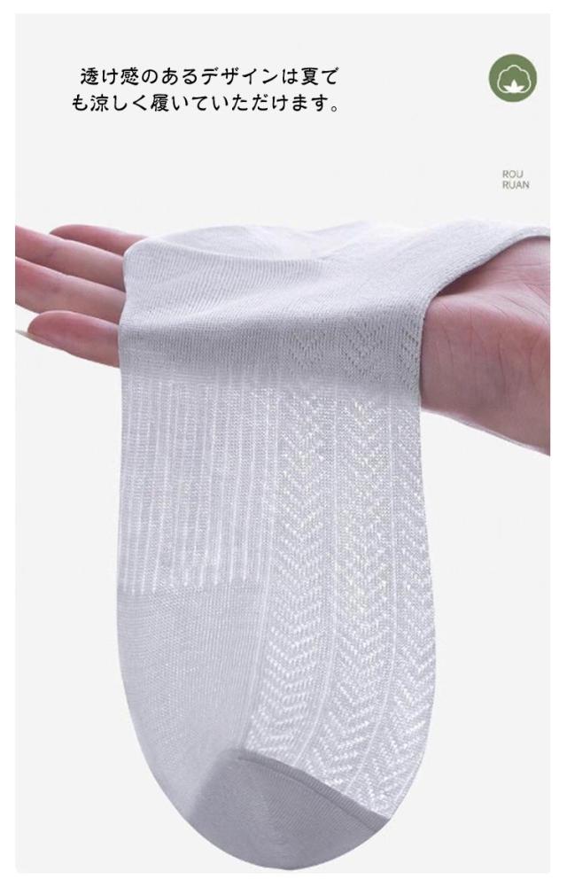 | メッシュ生地になっており、爽やかで、通気性も抜群なショートソックス。 薄手の素材ならではの透け感、さらりとした履き心地。 透け感のあるデザインは夏でも涼しく履いていただけます。 サンダルと合わせることでぐっとおしゃれに! ソフトで軽いシースルー素材が足を包み込むから、ずっと快適でいられる。 伸縮性も良く、ソフトな肌触りの履き心地・フィット感。 軽量&薄地で瞬冷通気。暑い季節もヒンヤリ爽やかなはき心地! | |