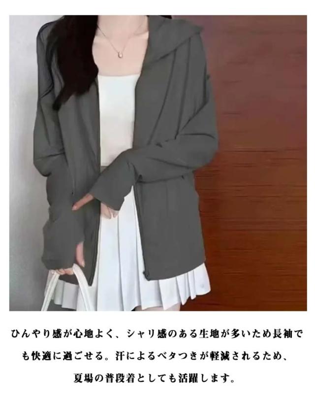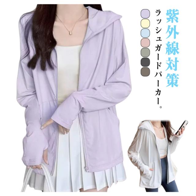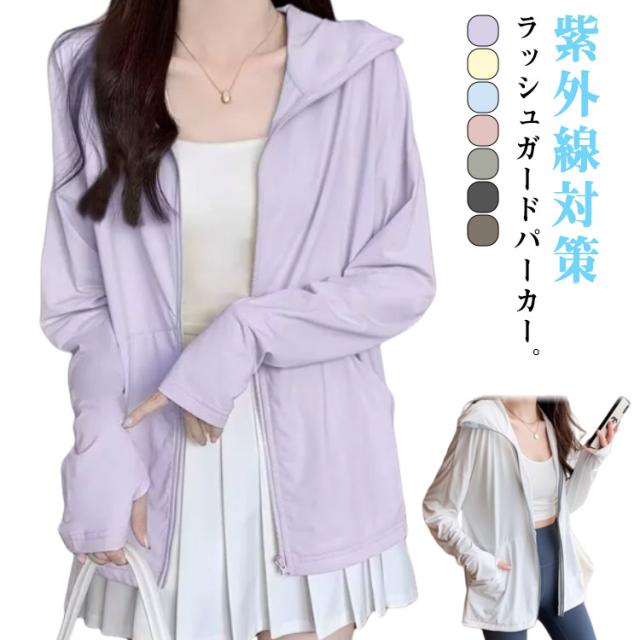 UVカット パーカー 涼感 ラッシュガード レディース 接触冷感 薄手 UVパーカー 春 夏 UPF50+ 紫外線対策 日焼け防止 フード付き 羽織り アウター ジップアップ 指穴付き ジップアップ 無地 ラッシュパーカー アウター おしゃれ