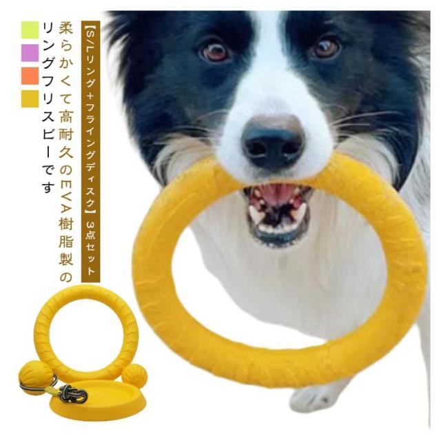 柔らかい 3点セット おもちゃ フリスビー フリスビー フリスビーリング 円盤 小型犬 犬用 EVA樹脂 投げる おもちゃ 噛む フライングディスク ソフト 噛むおもちゃ 投げるおもちゃ リングS/L+フライングディスク 中型犬 大型犬 運動不足解消 ストレス解消 丈夫 耐久性
