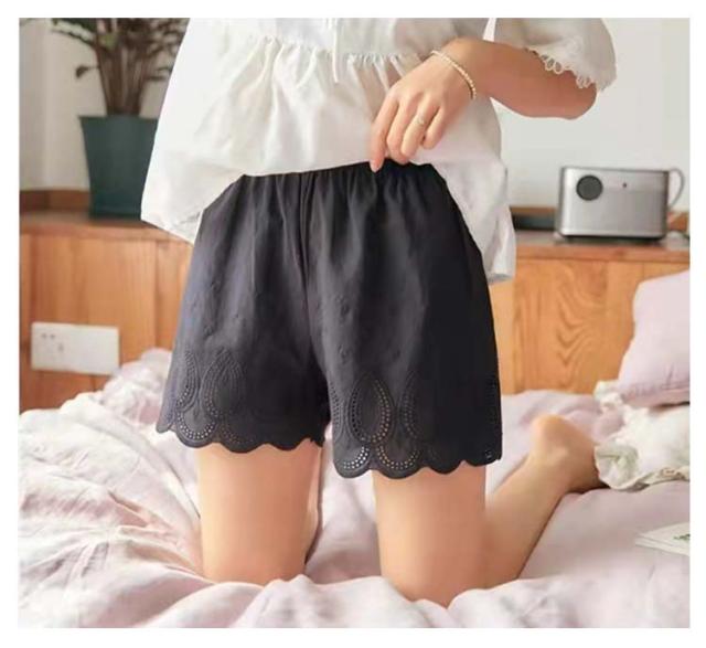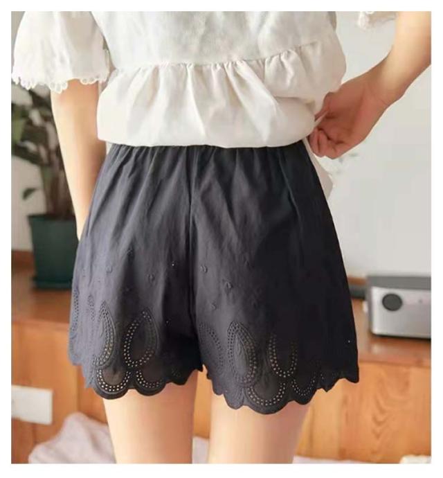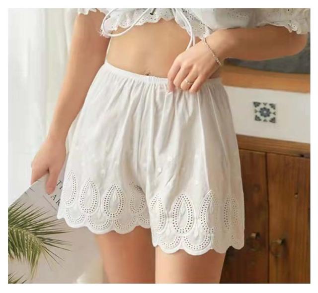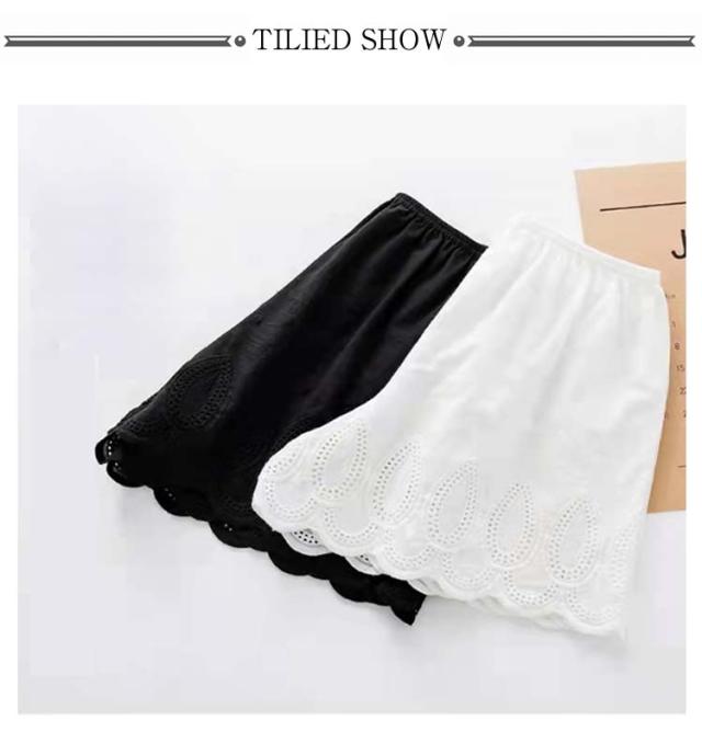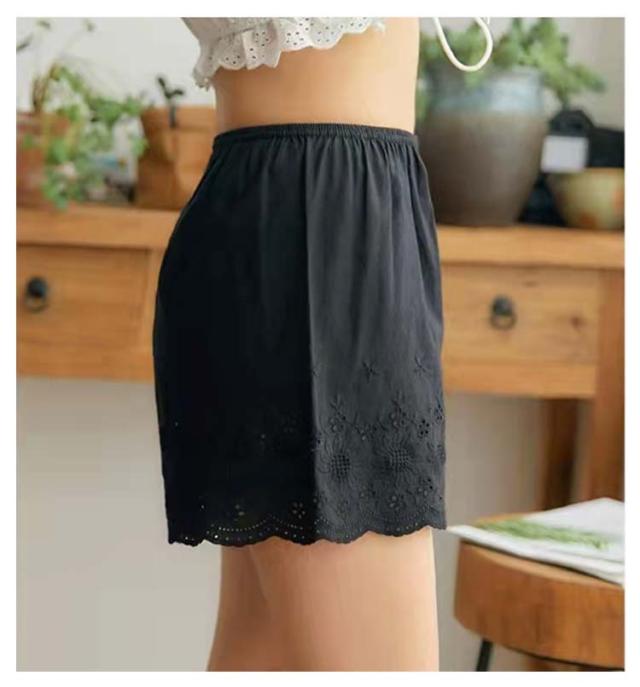レディース ペチコート レース 刺? ペチパンツ ウエストゴム 綿100% 下着 ペチパンツ ショートパンツ スカラップ刺繍 インナー ペチパン 膝上 ハーフパンツ 体型カバー ワイド 透け対策 透け防止 黒 白