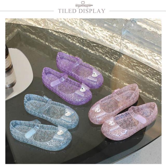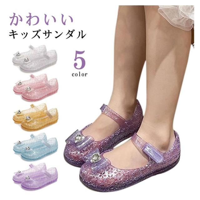 女の子 ラメ キッズ キラキラ キッズ クリアサンダル 透明 おしゃれ プリンセスサンダル 靴 サンダル かわいい 子供 夏 サマーサンダル プリンセスシューズ フラットシューズ マジックテープ お姫様 誕生日 プリンセス