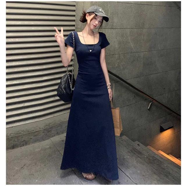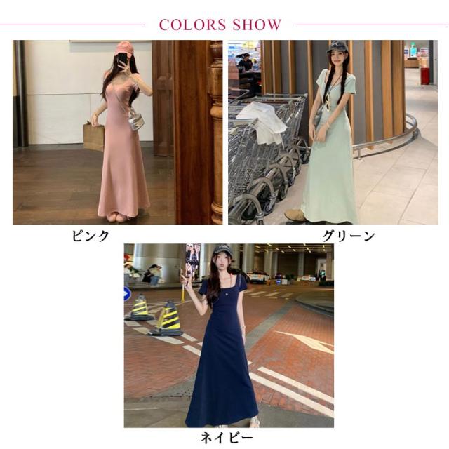 伸縮性 フレア ワンピース スクエアネック 半袖 aライン フレアワンピース カップ付きワンピース ワンピース マキシワンピース ロング丈 ストレッチ 無地Tシャツ 通気性 締め付けない カットソー 部屋着 大きいサイズ