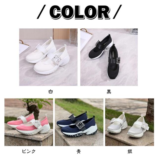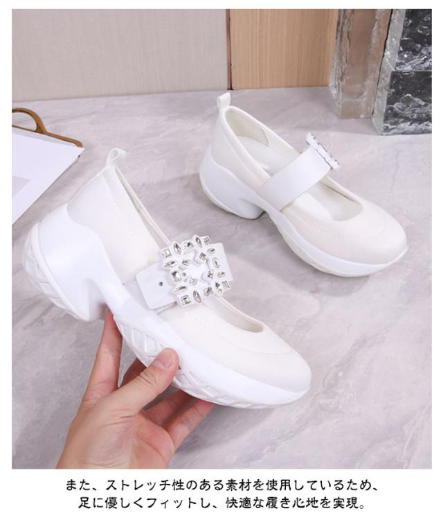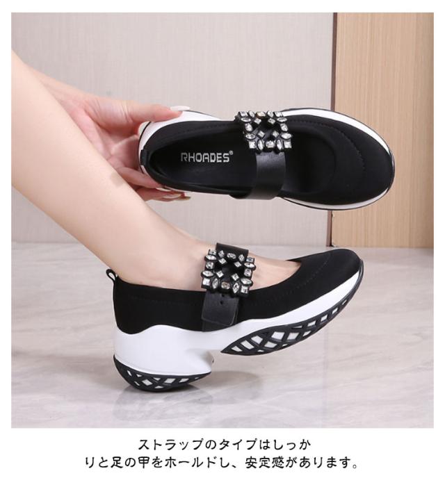 キラキラ 脚長 ビジュー パンプス 厚底 スニーカー パンプス 厚底スニーカー きらきら レディーススニーカー 黒 おしゃれ ビジュースニーカー クリスタルバックルスニーカー メリージェーン ストレッチ 楽ちん