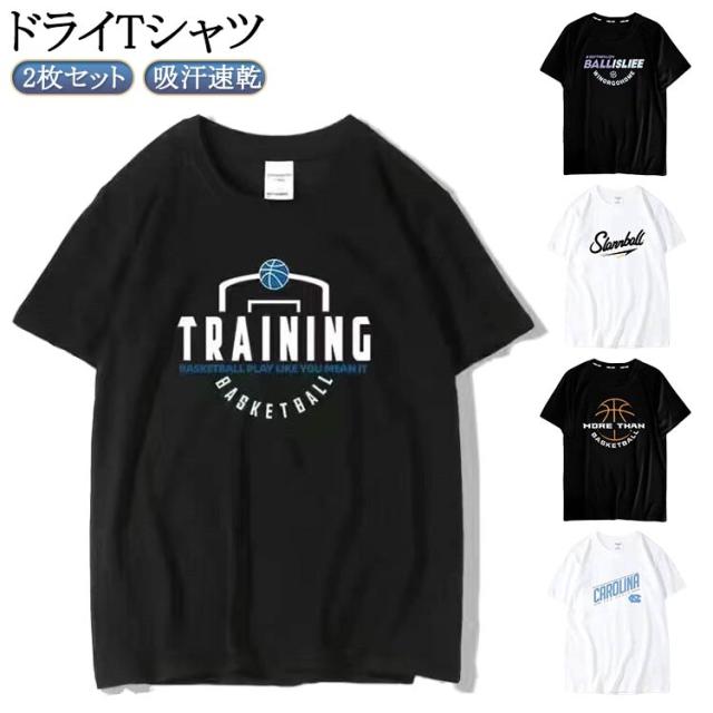 2枚組 ドライメッシュ バスケ ロンT 半袖 カジュアル Tシャツ 半袖 ドライ おしゃれ tシャツ メンズ 無地 バスケ バスケットボール ティーシャツ 吸汗速乾 シンプル スポーツ テニス バスケ サッカー 春 夏