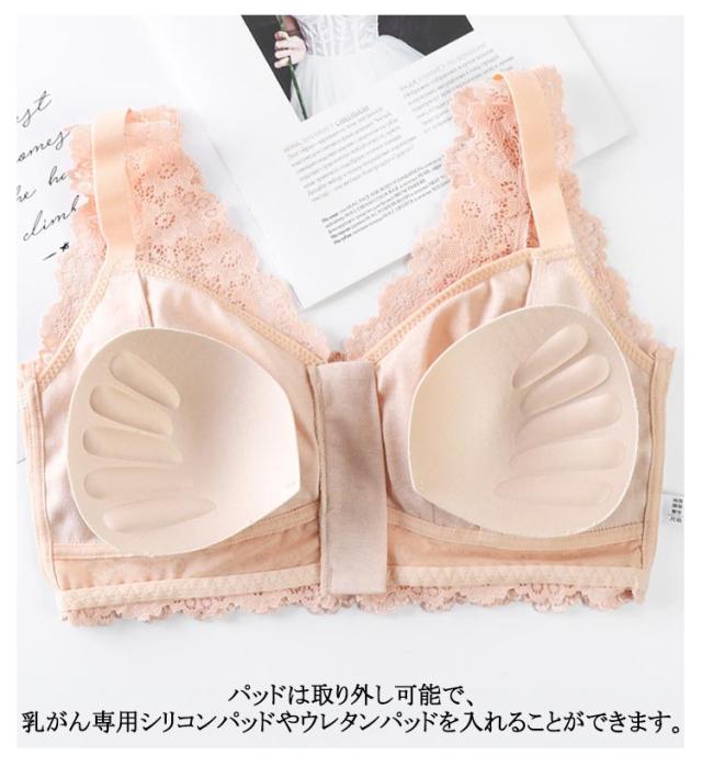 乳がん専用 乳ガン フラワーレース 乳がん 前ジッパー 後 ノンワイヤー ブラジャー ブラ 術 手術 M-4XL 術後 下着 後 全摘 ノンワイヤーブラ 胸帯 綿 乳がん専用 乳癌 乳がん ブラジャー 前開き 乳がん ブラ 補正下着