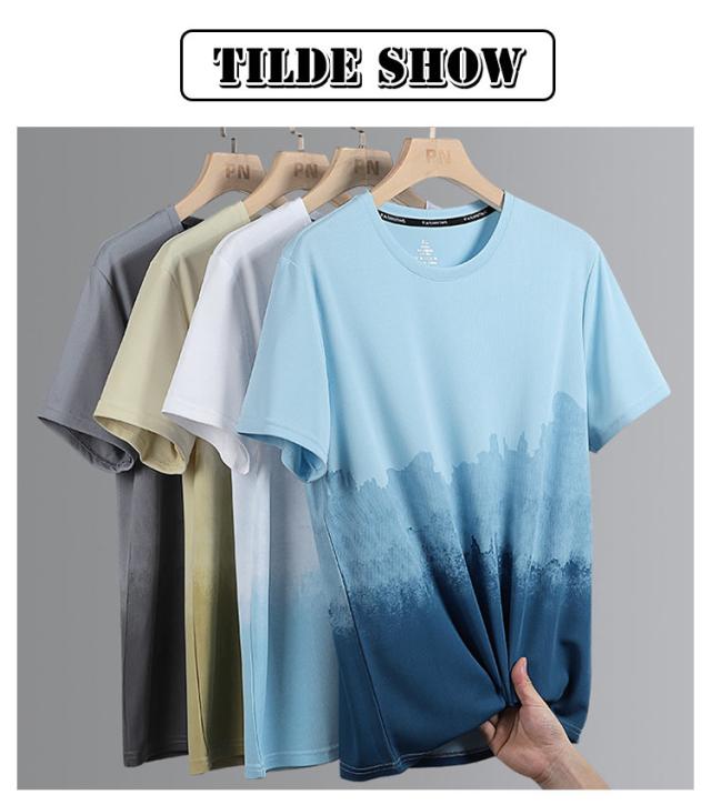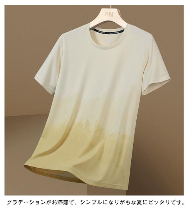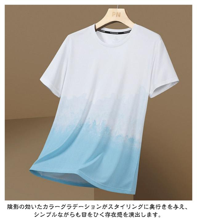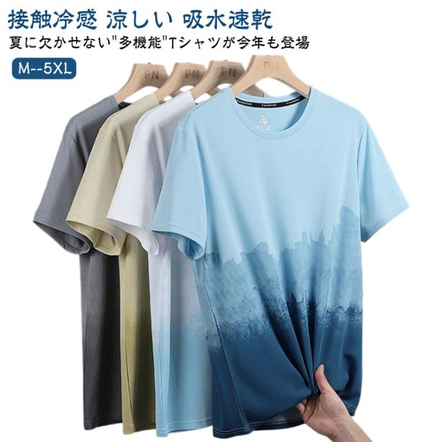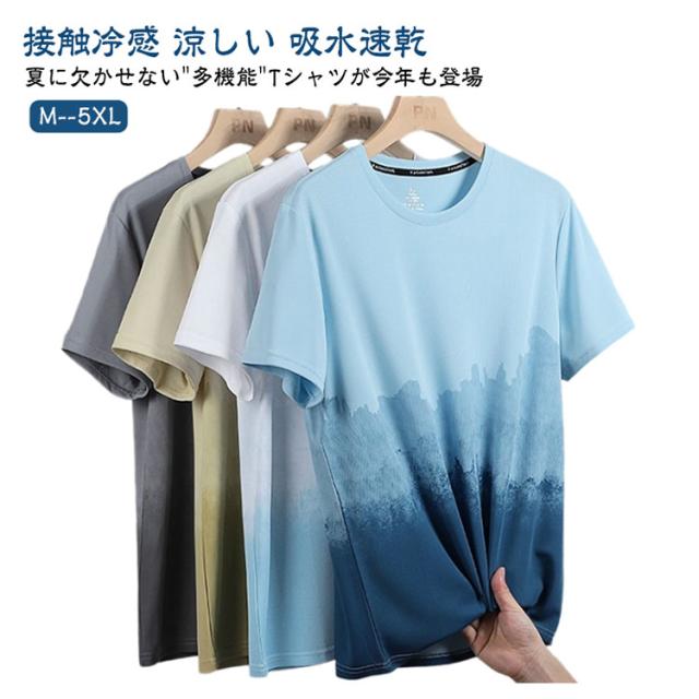 メンズ 半袖tシャツ 半袖 ひんやり カットソー おしゃれ ビッグtシャツ グラデーション 半袖 軽い カジュアル ゆったり 丸襟 接触冷感 夏服 快適 クルーネック 柔らかい 涼しい 吸水速乾 春 夏 秋
