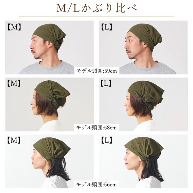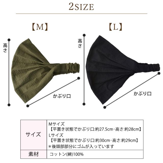 2サイズ展開でゴムも入っているので、頭のサイズを気にせず使っていただけます。