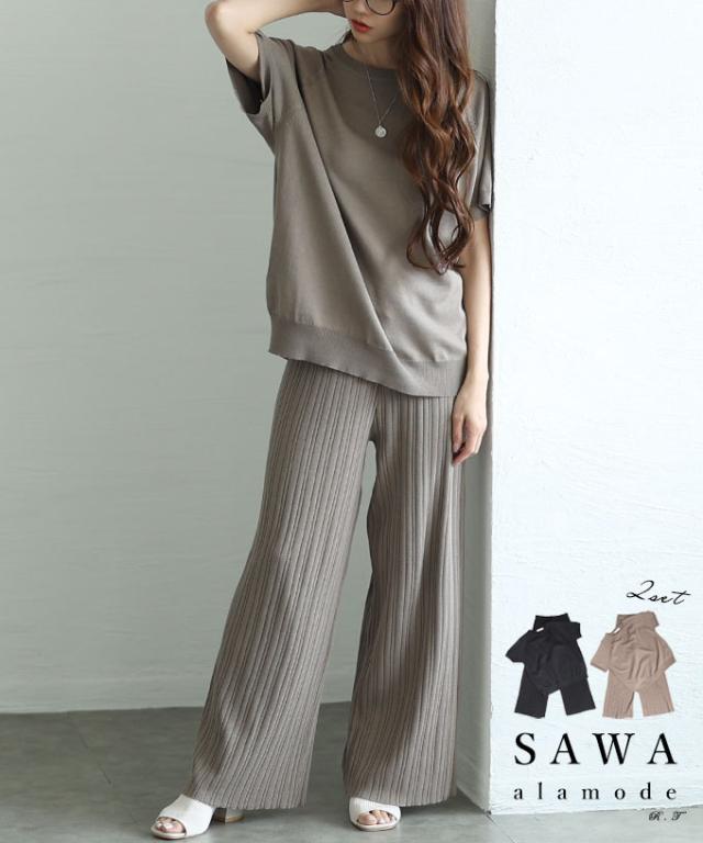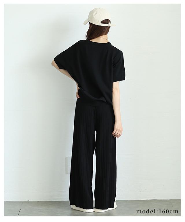 特徴: 2点 セット サマーニット リブ ウエストゴム ワイド