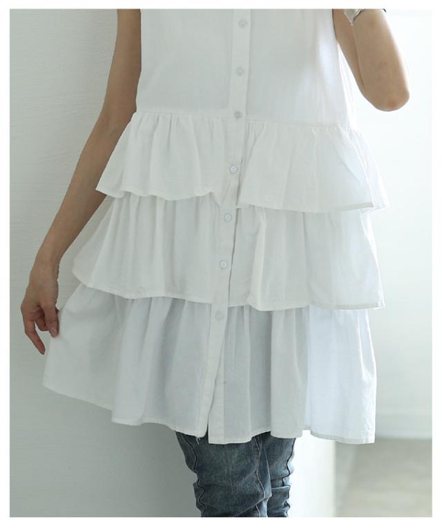 特徴: ティアード スタンドカラー ボタン コットン フレア