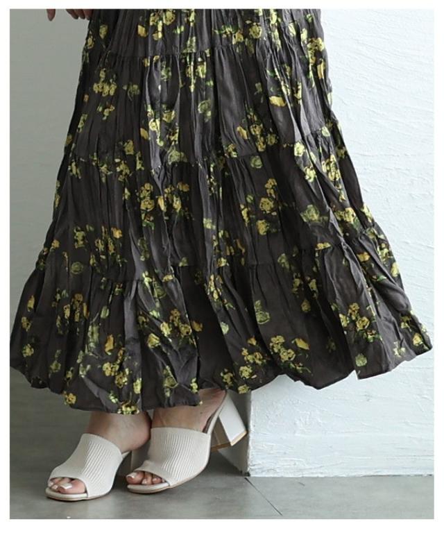商品名: ふんわりシルエット小花柄ティアードフレアスカート