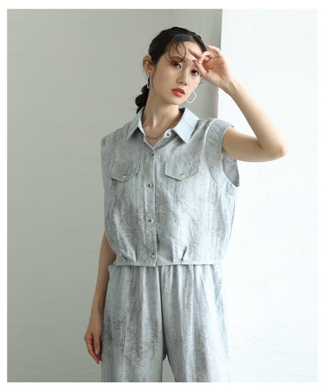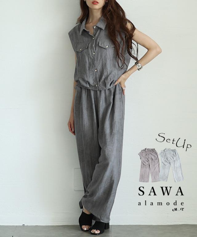 春新作 ニュアンス感と上品さを纏うノースリーブシャツ&ワイドパンツセットアップ レディース ファッション セットアップ シャツ パンツ ロング ワイド 30代 40代 50代 60代 サワアラモード sawaalamode otona 大人 cawaii 可愛い 洋服 かわいい服 almam-82161