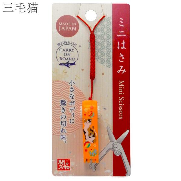 機内持ち込み可 ミニはさみ 三毛猫 日本製 関の刃物 安全ロック付 携帯用 小さいハサミ 根付 ストラップ付 和柄 ウカイ利器 UC-447W オレンジ 猫 ネコ ねこ