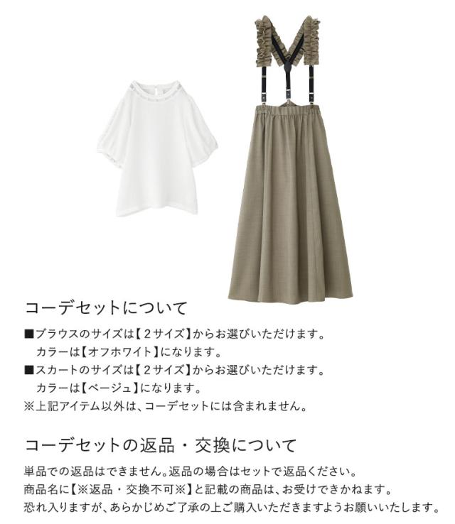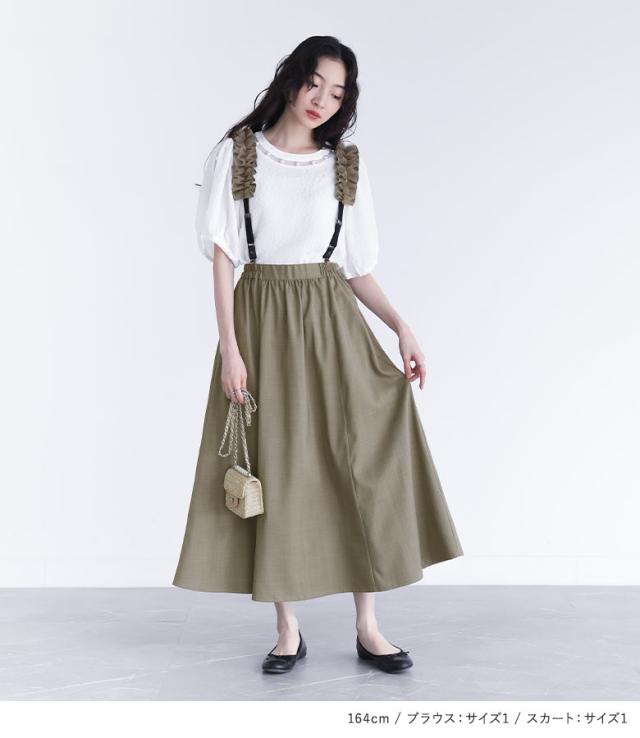 【送料無料】『フェイクパール付きフラワージャカードブラウス×フリルサスペンダー付きフレアスカートコーデ2点SET』【メール便不可】【40】[2点コーデセット 2025 レディース ブラウス 半袖 スカート ロング]
