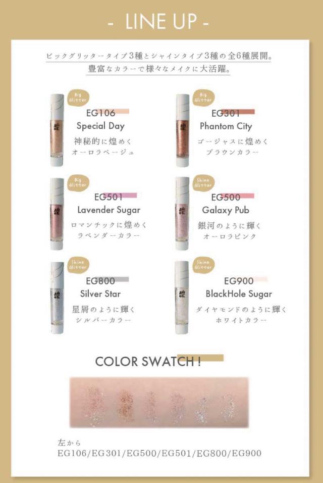 大小のパールミックスでキラメキMAX!遠くからでも目立つパール感 華やかに輝く大き目パールと小刻みにきらめく小さめパールがミックスされ特別な輝きを放ちます。 ●商品名:Amiok Spin Glitter Liquid Eye Glow ●販売名:アミオク スピングリッターリキッドアイグロー ●容量:4g ●成分 :水 マイカ ケイ酸(Al/Ca/Na) シクロペンタシロキサン ホウケイ酸(Ca/Al) ポリプロピルシルセスキオキサン グリセリン 1,2-ヘキサンジオール ポリソルベート60 (アクリル酸ヒドロキシエチル/アクリロイルジメチルタウリンNa)コポリマー アルギニン カルボマー ●区分/製造国:化粧品/韓国 ●使用・保管のご注意 化粧品がお肌に合わないとき即ち次のような場合には、使用を中止してください。そのままご使用を続けますと、症状を悪化させることがありますので、皮膚科専門医等にご相談されることをおすすめします。 (1)使用中、赤味、はれ、かゆみ、刺激等の異常があらわれた場合 (2)使用したお肌に、直射日光があたって上記のような異常があらわれた場合 (3)使用後は必ずしっかり蓋をしめてください。乳幼児の手の届かないところに保管してください。極端に高温又は低温の場所、直射日光のあたる場所には保管しないでください。 ●製造販売元:有限会社ナ・ムーン 電話0422-24-9297