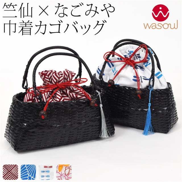 浴衣 かごバッグ 通年用 日本製 WASOUL 竺仙 浴衣地 かご巾着 台形 籠 カゴ 巾着バッグ おしゃれ 大人 レディース 女性 10024718