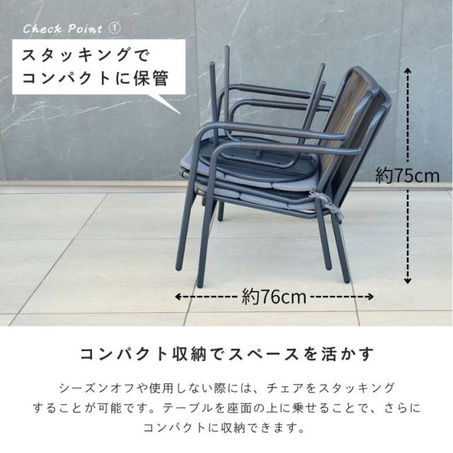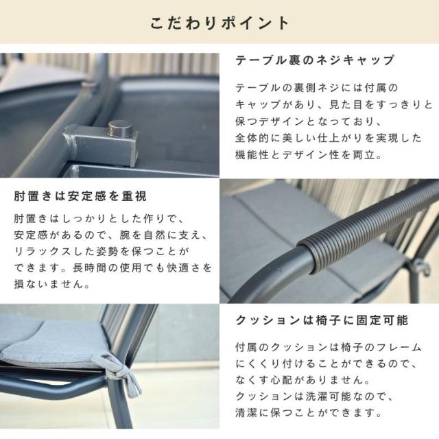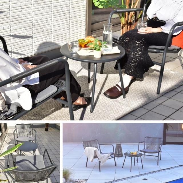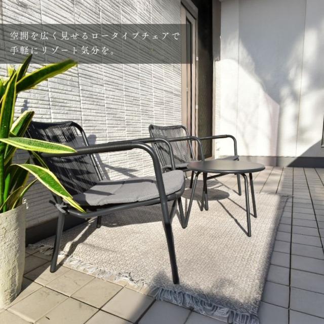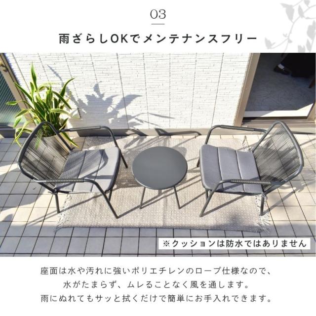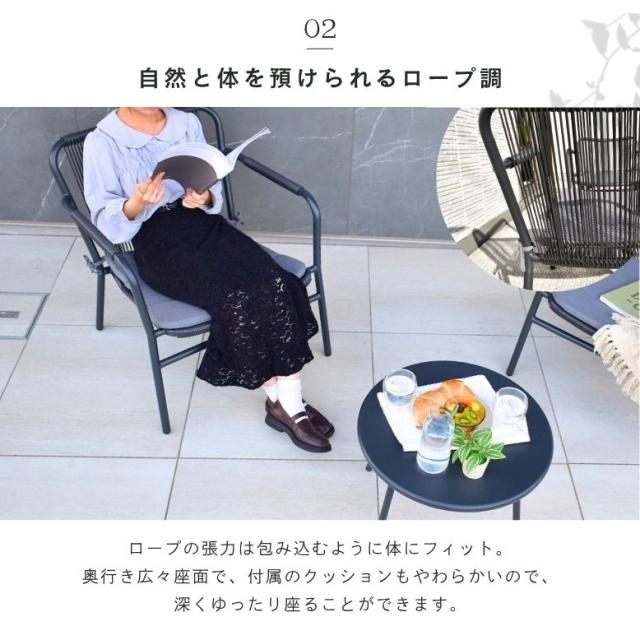 ガーデンチェア ガーデンテーブル ガーデンファニチャー ガーデンチェアセット 3点 屋外 アウトドア チェアセット 庭 ブラック ベランダ 椅子 ロープ クッション付き テーブルセット ルファバルコニー3点セット 【大型宅配便】
