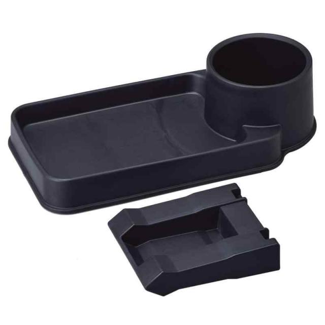 【ドリンクや小物を同時に置けるベンチシート専用トレイ】シート隙間に挿して使うベンチシート用のカップホルダー付きトレイです。