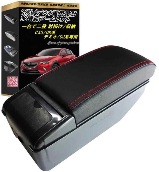 *スマホやリモコンキー お財布 カギ キーホルダー タバコ icos ETC カードなどの手元に置きたい小物を収納できる大容量のスペースを確保する CX3 DK系 デミオ DJ系用の多機能なセンターコンソール兼 アームレストです。商品は検品後に組立済にて発送致します。