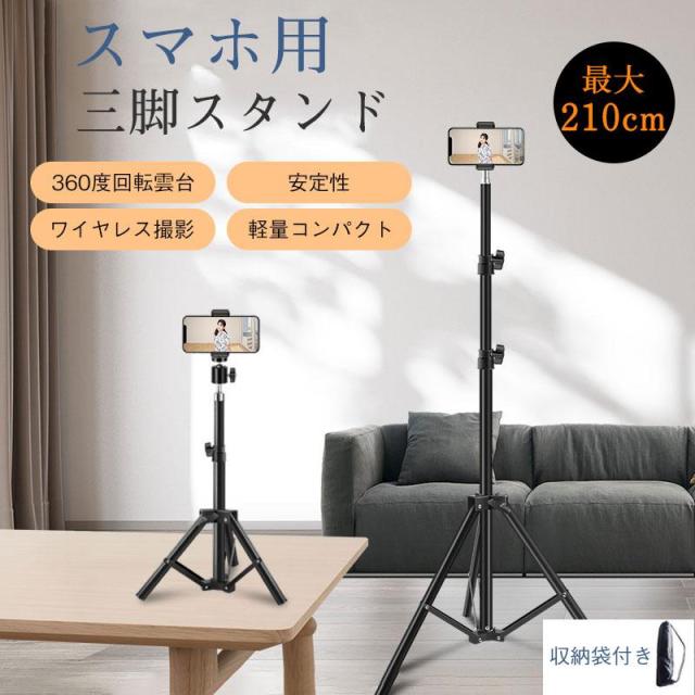 三脚 スマホ用 自撮り スマホ用三脚 リモコン コンパクト 旅行用三脚 軽量 自撮り棒 スマホスタンド 縦 210cm インスタ撮影 ワイヤレス撮影