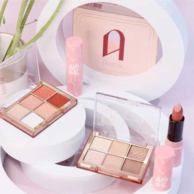 【限定品】アミオク アイシャドウパレット & リップ セット 新感覚 しっとり もっちり クレイ(粘土)タイプのアイシャドウとリップセット しっかり 密着 発色
