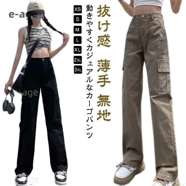 カーゴパンツ レディース デニム 10分丈 春 秋 薄手 無地 ハイウエスト ベイカーパンツ 女性用 ルーズ ズボン ボトムス ワークパンツ チノパン