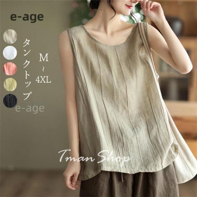 タンクトップ レデイース リンネル トップス ノースリーブ 綿麻 tシャツ インナー 無地 薄手 シンプル 大きいサイズ ゆったり 着痩せ 通勤 OL おしゃれ 夏